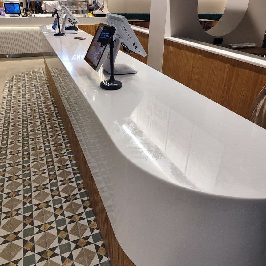 Изготовление стоек ресепшен из акрилового камня на заказ в Санкт‑Петербурге